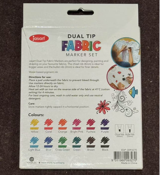 Jasart Fabric Marker Set Dual Tip 4mm/2mm 12pc