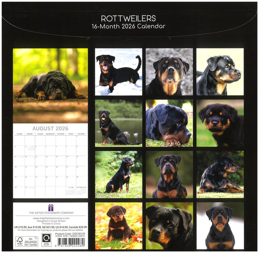 2026 Wall Calendar - Rottweilers