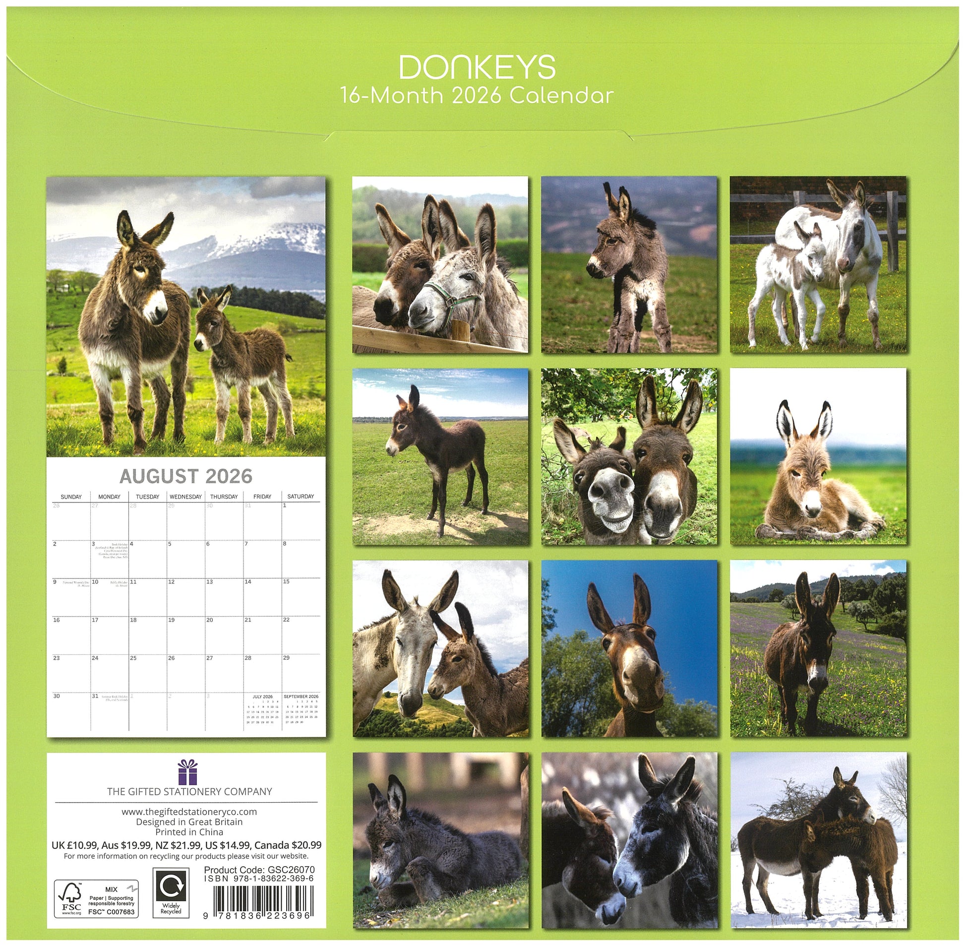 2026 Wall Calendar - Donkeys