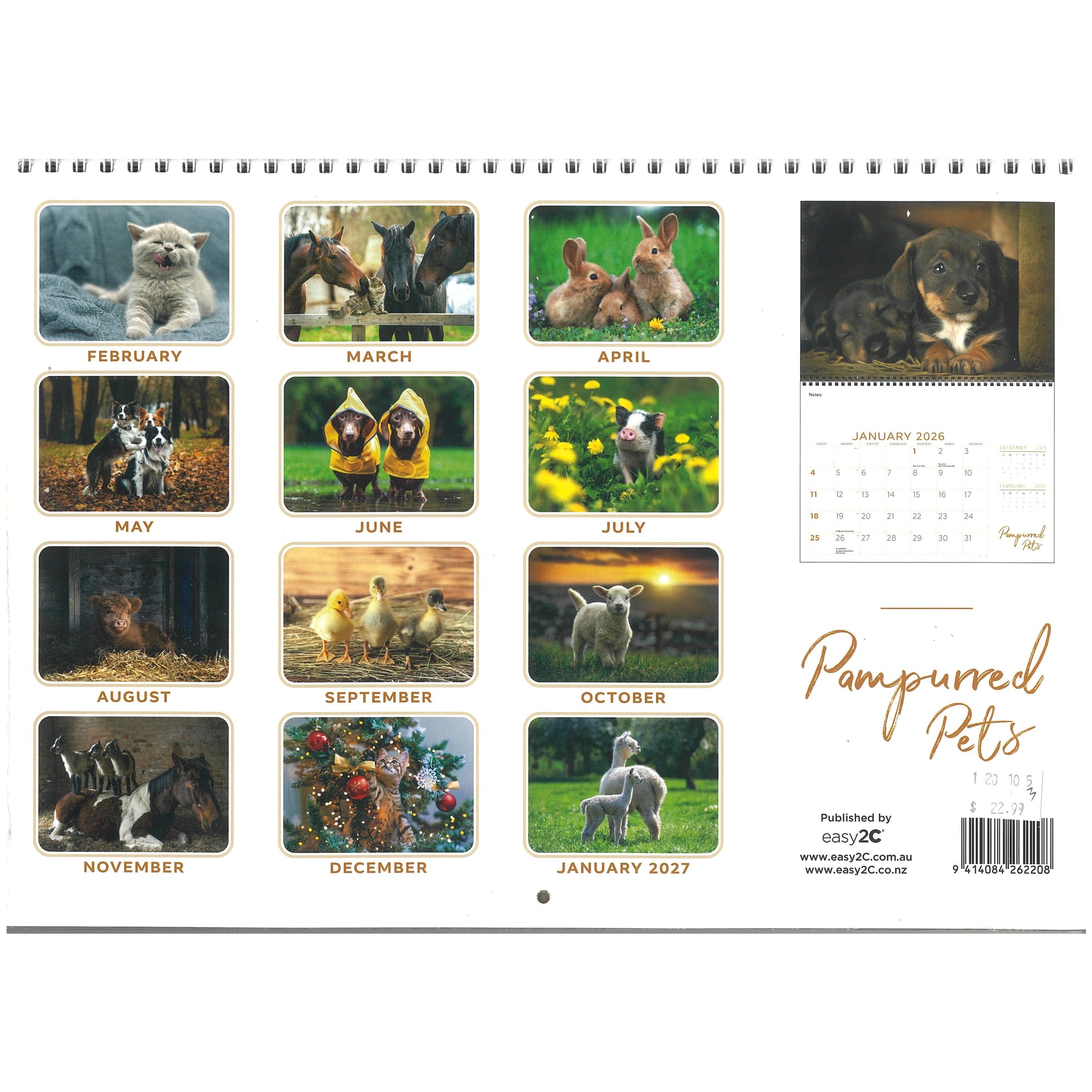 2026 Wall Calendar New Zealand Pampurred Pets