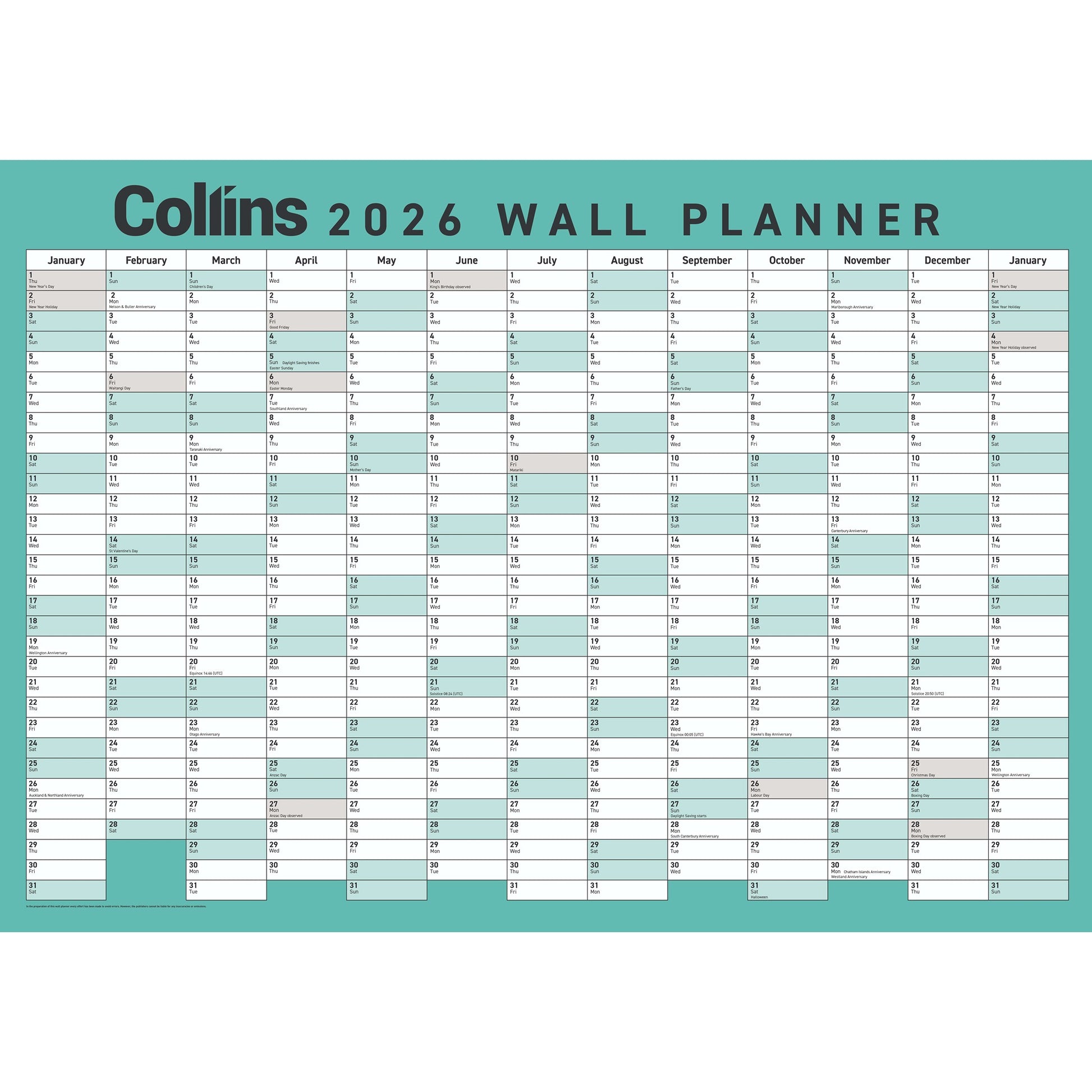 Collins 2026 Wallplanner Double Sided A2 / Laminated