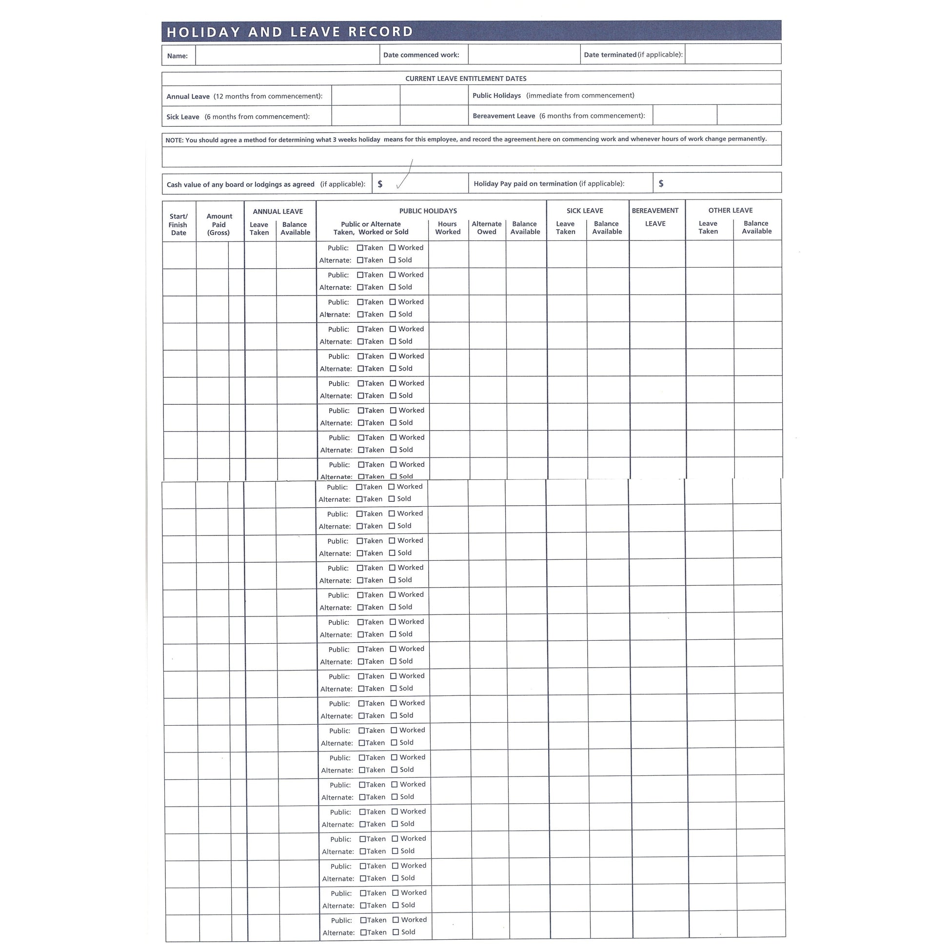 Holiday Complete Holiday & Leave Record